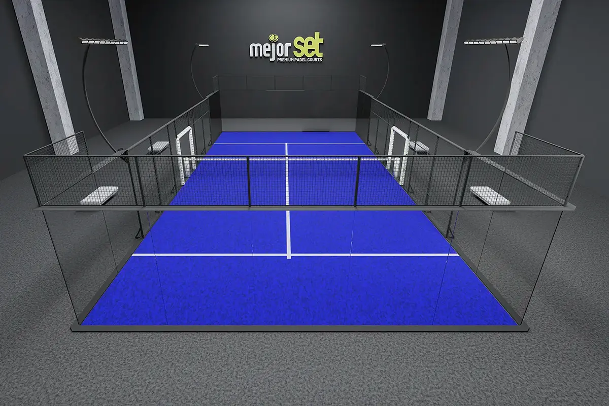 La piste Full Panoramic inclut un gazon haute performance de MONDO, conçu spécifiquement pour le padel. Le modèle standard utilise le MONDOTURF NSF SHOT XN, un gazon texturé de 10 mm fabriqué avec des monofilaments XNOVA et un remplissage de sable de silice. Il offre une excellente adhérence, une vitesse contrôlée et une durabilité longue durée avec un entretien minimal. Disponible en vert ou bleu.